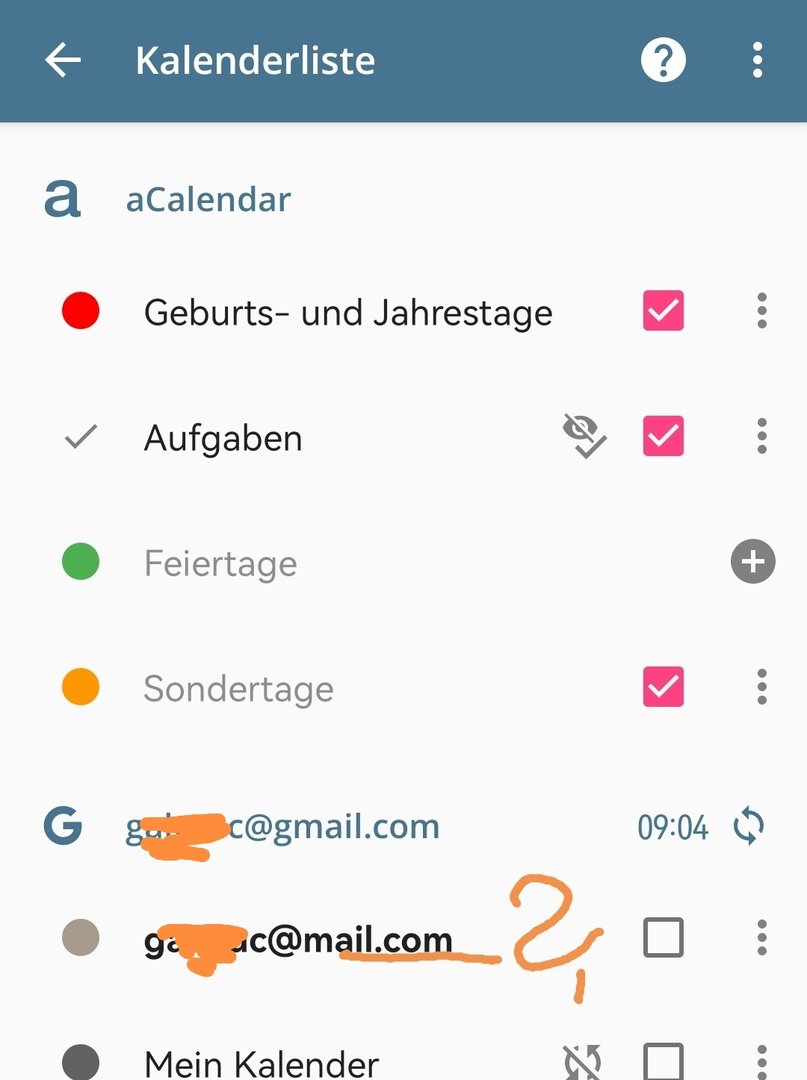 Mein Gmail Konto wird korrekt angezeigt, aber darunter noch mit meinem Namen vor dem @ mail.de, das gibt's aber nicht, wie kommt das? Außerdem bekomme ich immer 2 Benachrichtigungen für einen Geburtstag, warum? Wo habe ich da einen Haken zuviel?