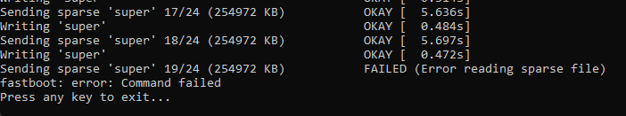 Das Android Flash Tool bleibt beim Flashen des aktuellen Android 14 (auf mein Pixel 9 Pro) immer beim Punkt "Updating Super Partition -> Uploading Partition Data" bei 4,54 von 5,65GB stehen und gibt als Fehlermeldung aus, dass das Gerät nicht antworten würde. Ich habe am Rechner 3 USB-C Ports und auch 3 verschiedene Kabel (auch das originale) durchgetestet. Das Ergebnis ist immer gleich.