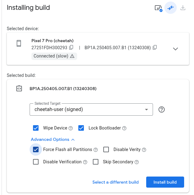 ich habe versucht Grapheneos per Web-Installer auf meinem Pixel 7 pro zu installieren. Mitten im Flashen kam dann eine Fehlermeldung bzgl. transferUSBIn (oder so ähnlich, aus dem Gedächtnis). Danach ging dann nichts mehr, das Pixel wird vom Web-Installer gar nicht mehr erkannt.
