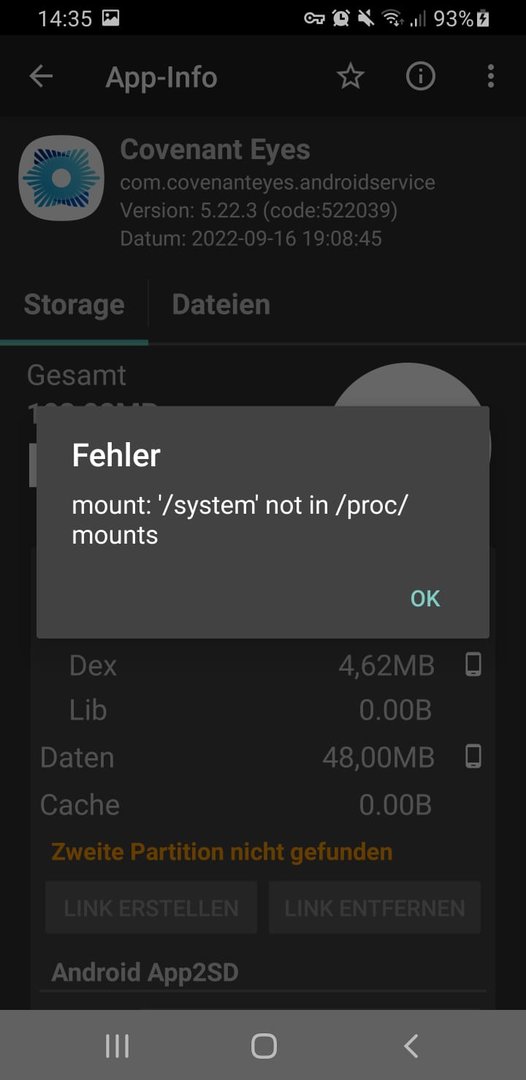 Nun will ich über Link2SD ein paar Benutzer Apps in System Apps umwandeln und bekomme folgende Fehlermeldung: