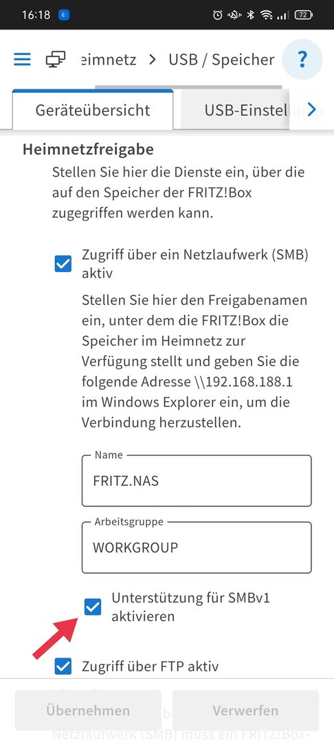 Smartphone<--->Fritzshare: