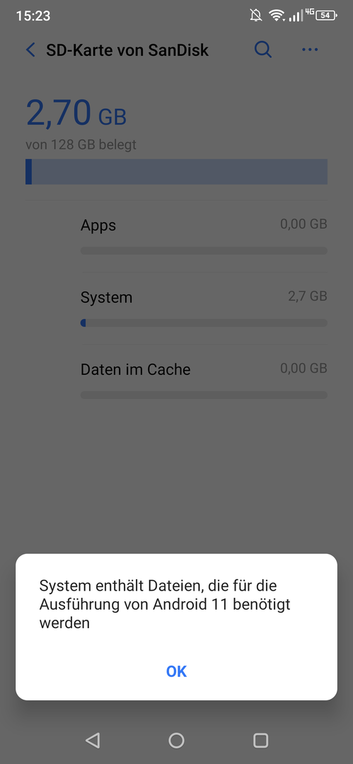 ich habe eine 128 GB SD Karte als internen Speicher formatiert. Nun will ich dies rückgängig machen.