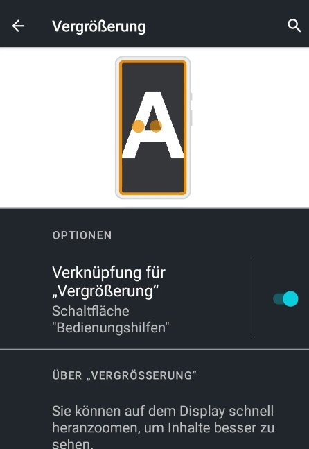 In Android 11 (und bei dem neuen Gerät Motorola Moto E32) scheint es auch eine Vergrößerungsfunktion zu geben und diese funktioniert auch.
