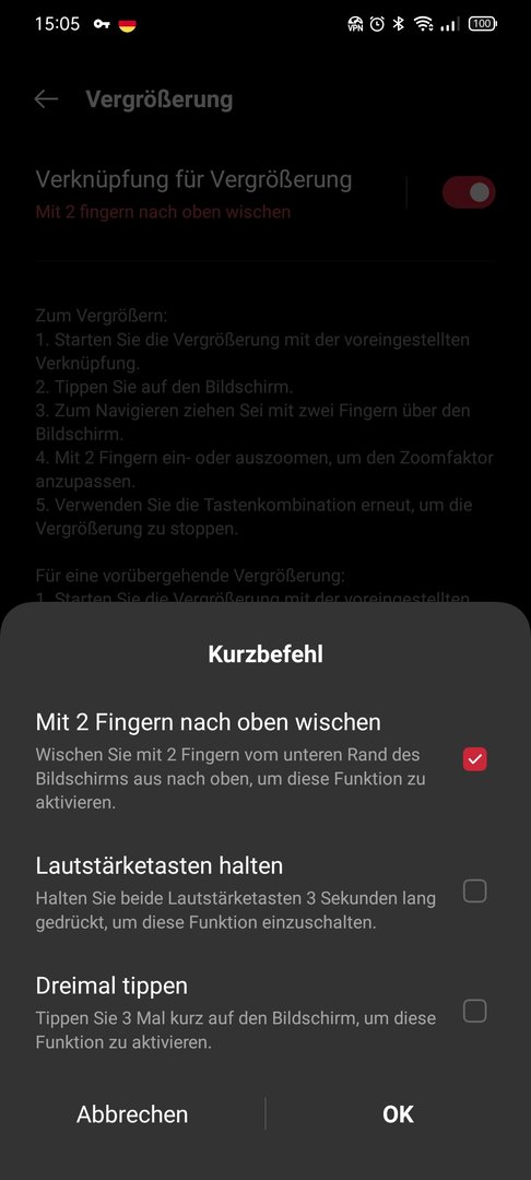 Gibt es vllt. auch irgendwie die Möglichkeit die Vergrößerung durch dreifaches Tippen (oder so) zu aktivieren?