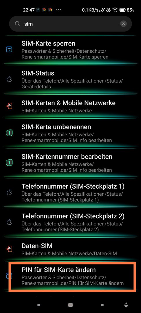 Wie ändere ich bei einem "Xiaomi Redmi 9a" die PIN der Sim-Karte?