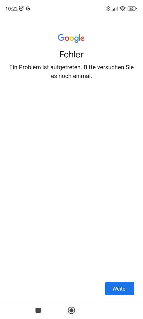 Zu meinem Problem: Ich kann seit ca. einer Woche mein Google-Konto nicht mehr mit meinem Smartphone verbinden. Es ging damit los, dass ich zu einer "Kontoaktion" aufgefordert wurde, woraufhin sich rein gar nichts tat. Ich recherchierte ein bisschen und u.a. wurde dazu geraten, das Google-Konto zu entfernen und neu zu verbinden. Ersteres hat geklappt, zweiteres nicht. Immer wenn ich versuche das Konto zu verknüpfen kommt die nichtssagende Fehlermeldung "Ein Problem ist aufgetreten. Bitte versuchen sie es noch einmal."