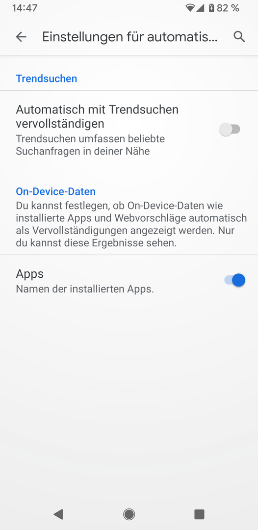 Habe ein Pixel 3a mit Android 12. Obwohl in der der Google App Trendsuchen deaktiviert habe, erscheinen die Trends immer in der Google Suchleiste der App, sehr störend. Hat das noch jemand, woran liegt das?