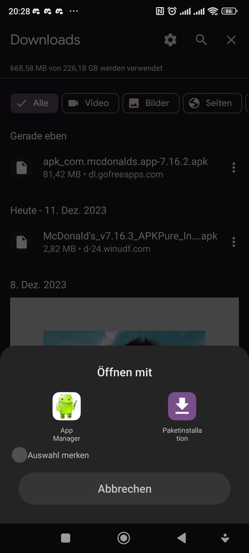 )Jetzt habe ich noch andere App-Installer runtergeladen, alle haben die entspr. Rechte, diese werden mir aber nicht zum Installieren als Auswahl vorgeschlagen.