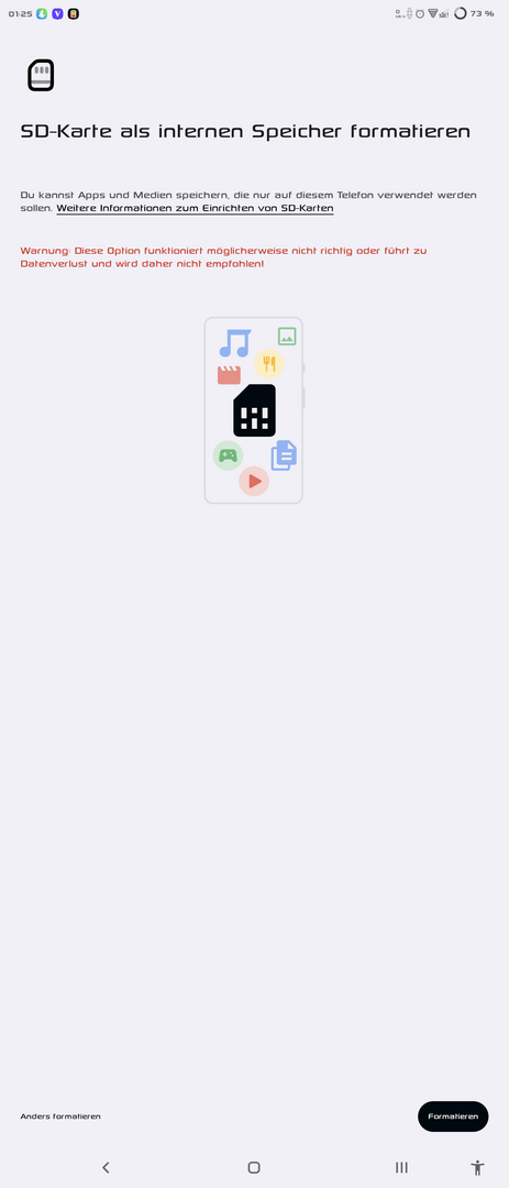 Hab was davon gelesen das man die karten als internen speicher formatieren kann, jedoch wird mir das bei beien geräten nicht angeboten.