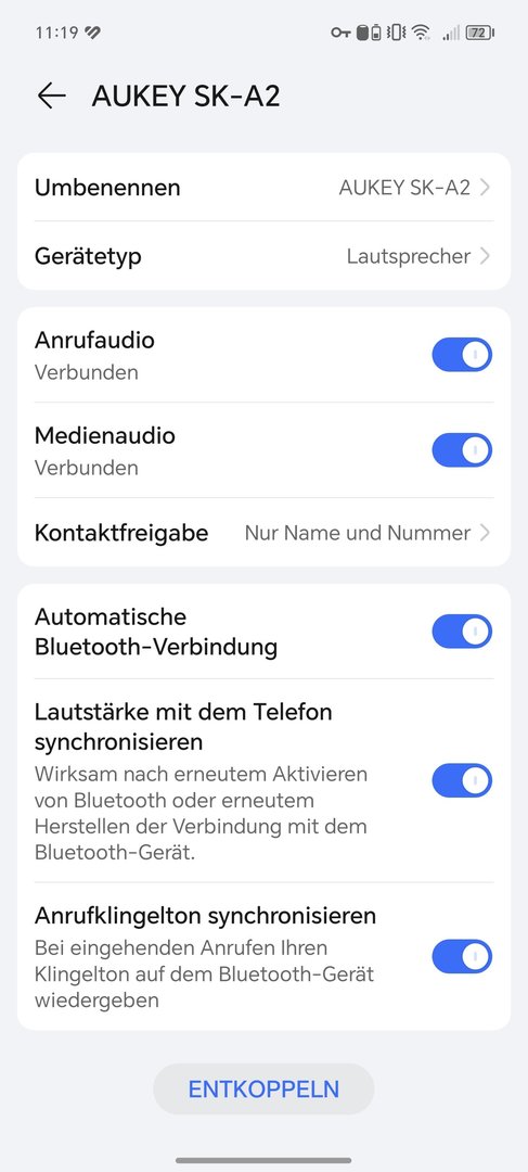 Bisher habe ich keine Einstellung gefunden, wo ich das automatische Verbinden verhindern kann. Dauerhaft Bluethooth auf ihrem Handy zu deaktivieren ist keine Option. Genauso wenig möchte ich nicht, dass einer von uns die Bluetooth-Kopplung immer neu machen muss, wenn er/sie mal über die Box Musik hören möchte.