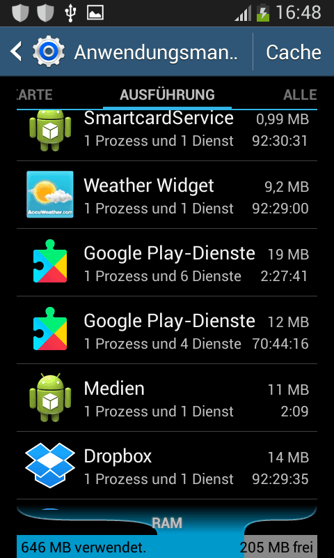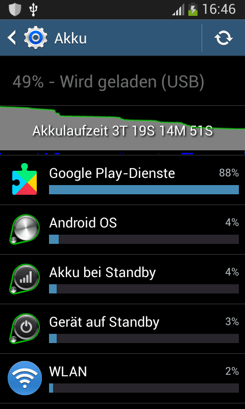 auf meinen Samsung Galaxy S3 mini (GT-18200N) mit Android 4.2.2 habe ich seit ein paar Wochen die Google Play Dienste als großen Verbraucher. Was könnte der Grund hierfür sein? Ist es auch normal, dass die Google Play Dienste im Anwendungsmanager zweimal erscheinen?