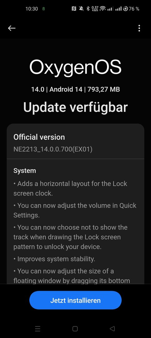 Aktuelle ist Android14 auf einem Oneplus 10pro installiert.