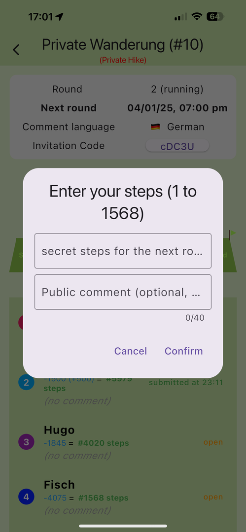 - Du testest meine kostenlose App „Deichwandern“ (ein nostalgisches Multiplayer-Spiel aus der FIDO-Net-Ära, in dem man strategisch Schritte setzt, um möglichst lange auf einem Deich zu bleiben).