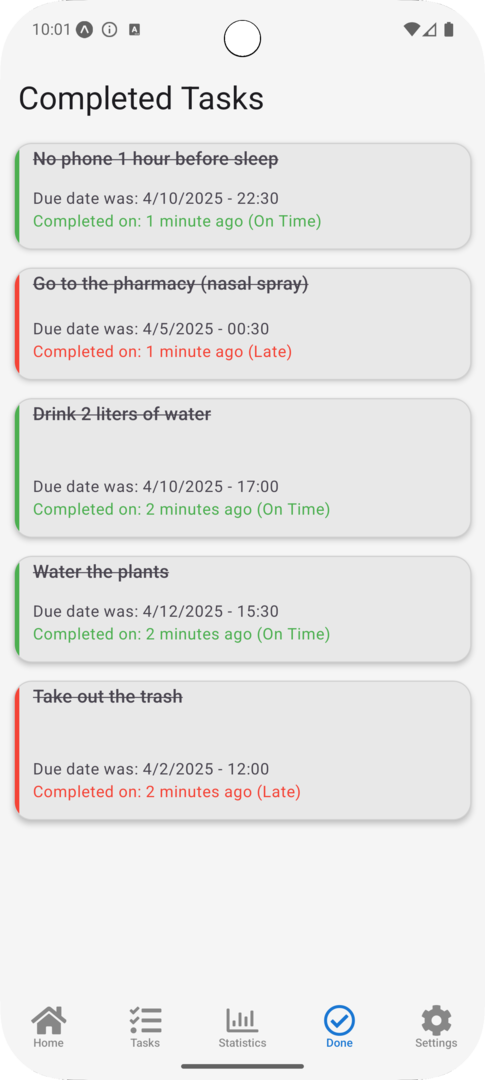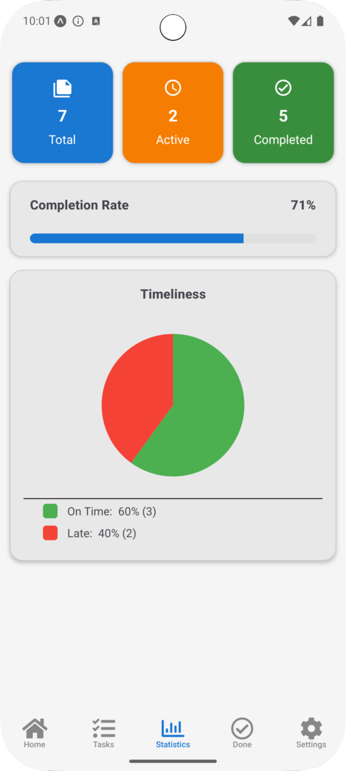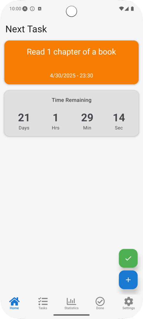 Aufgeräumtes Design – Titel auf der Task- und Statistik-Seite entfernt für mehr Übersicht.