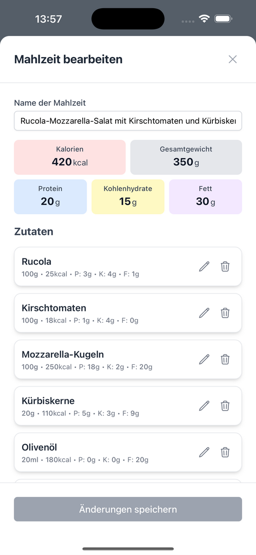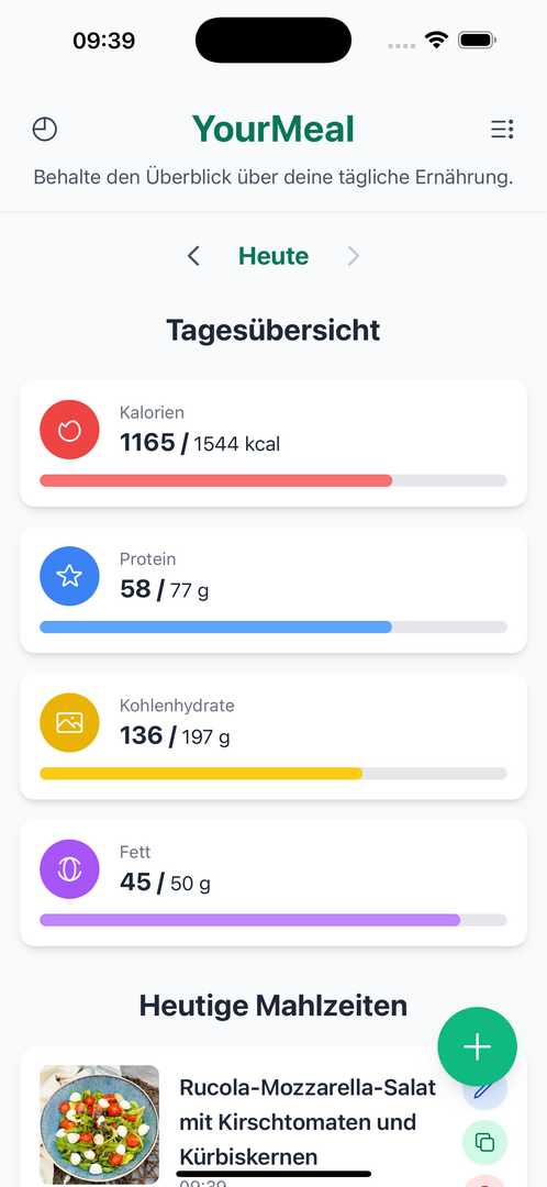 Mit YourMeal musst du nicht mehr Kalorien von Hand eintragen oder lange in Datenbanken suchen. Stattdessen reicht ein Foto von deinem Essen – die App analysiert mit Hilfe von KI (Google Gemini) die Kalorien, Makronährstoffe (Protein, Kohlenhydrate, Fett) und sogar die Zutaten.