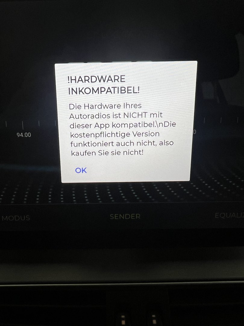 Leider funktioniert die Navradio App nicht (nicht kompatibel)