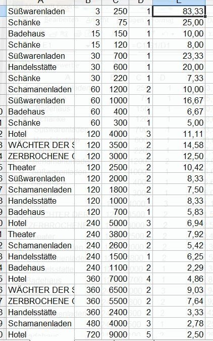 barby71 schrieb:ich hab mir mal die arbeit gemacht, ne excel-tabelle zu erstellen mit der auflistung aller geschäfte die ich bisher habe, was in welcher zeit am meisten bringt. ich würde die gern einfügen, weiß aber nicht wo sie am besten aufgehoben ist. kann ja gern von euch ergänzt werden, wer mag. einfach hier rein? was meint ihr?