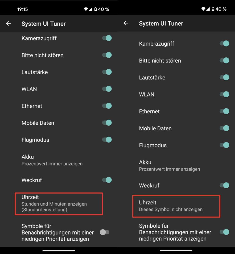 Direkter Eingriff in die Statusleiste dürfte wohl nur mit Root gehen. Ich mach's einfacher und blende die gesamte Statusleiste mit Nova (Gestensteuerung) aus.s.t.a.r.s schrieb:ie Uhr aus der Statusleiste