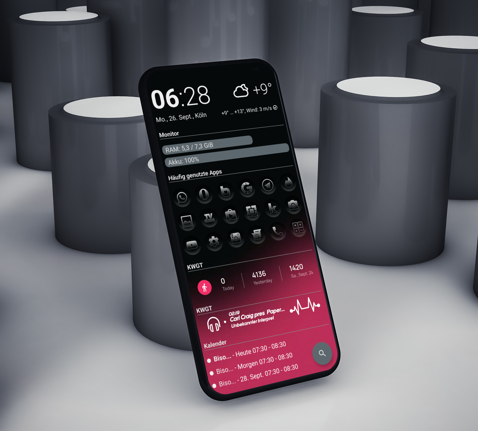 Unglaublich, hier auch... Bissel bearbeitet, Kontrastfarbe ändert sich entsprechend der Tageszeit. Nova, KLWP