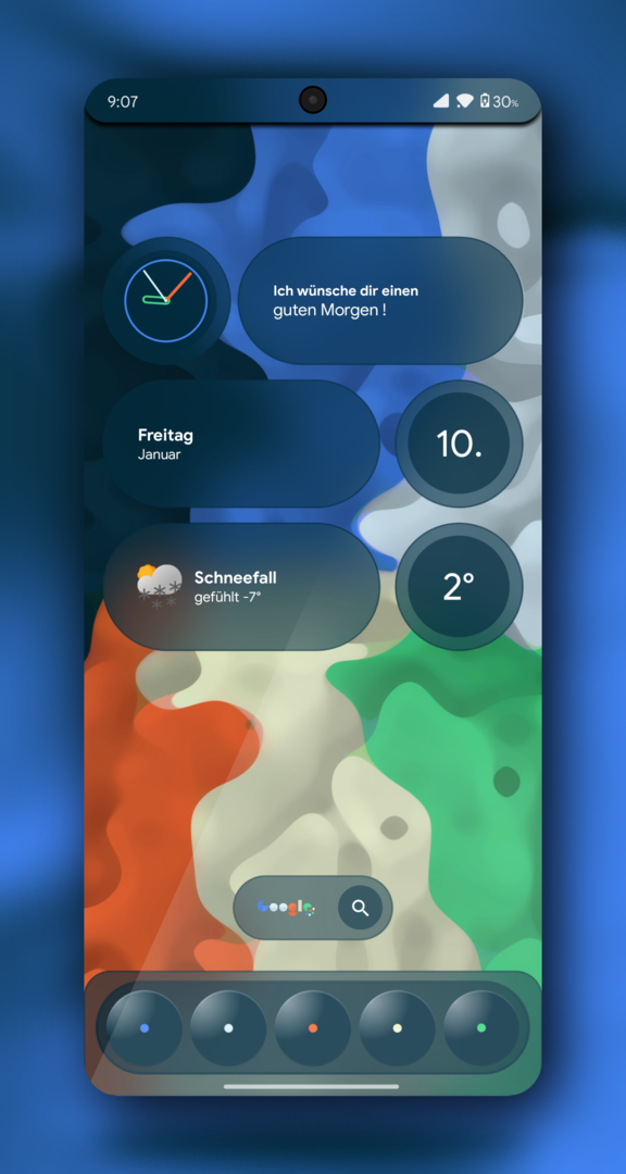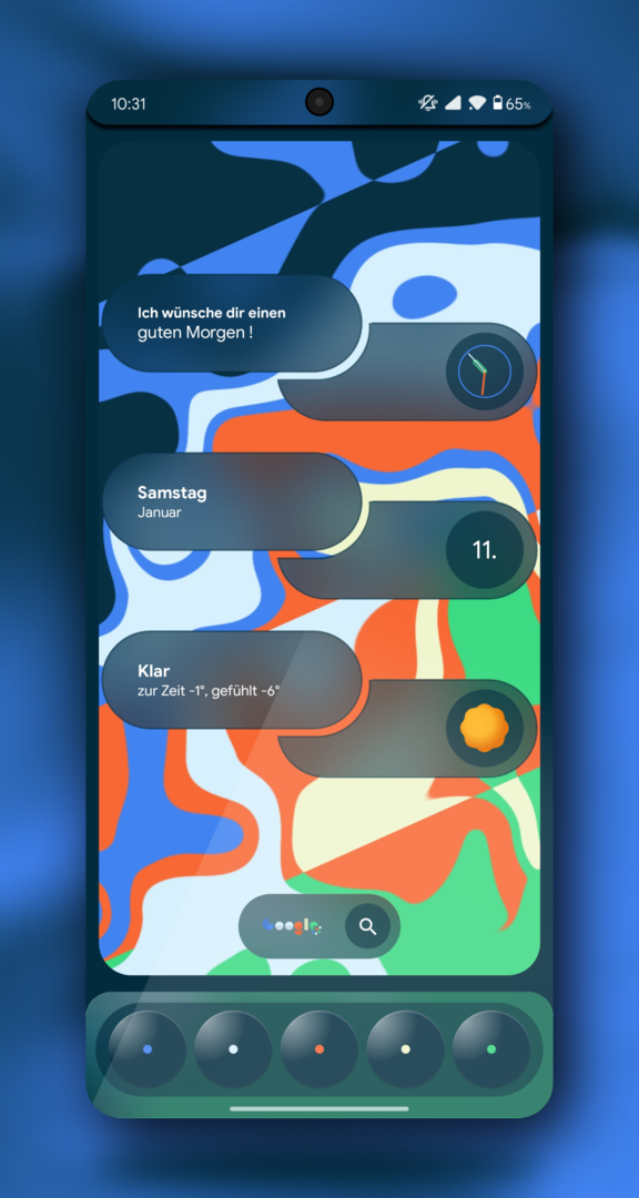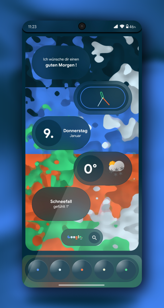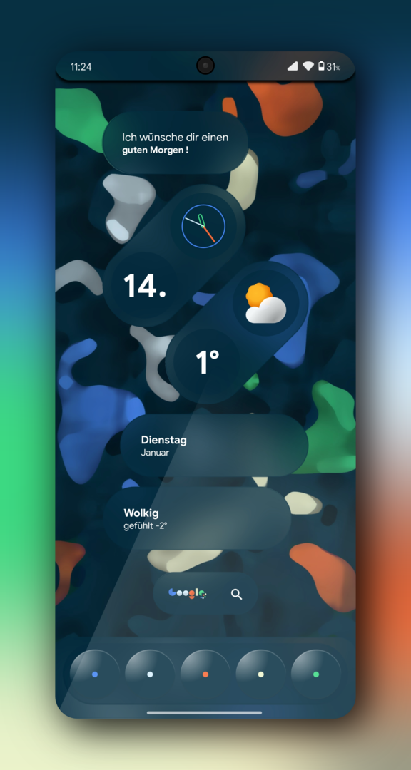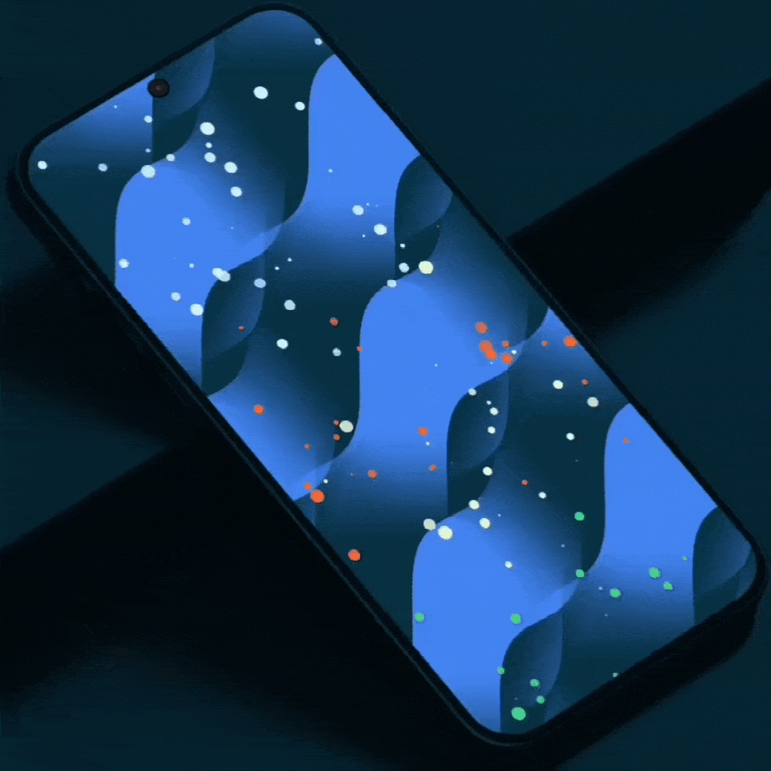 Jetzt große Punkte im Hintergrund, kleine Punkte im Vordergrund. Plus die Blurness.