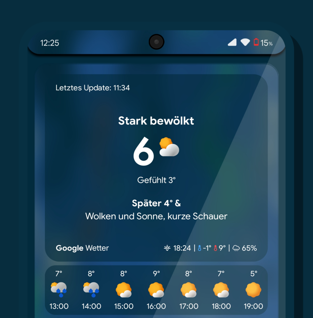 MarcusBremen Enthusiast 15.951 #6.510 MITT(E)woch erreicht ----- Ja, ich komme voran. Kleinere Änderungen und Umstellungen der täglichen Vorhersage auf meiner Wetterseite. ----- Letzte Änderung, bei bei der stündlichen Vorhersage Temperatur und Uhrzeit tauschen, dann siehts so aus wie auf der Google-Seite. Zuletzt bearbeitet: 12.03.2025