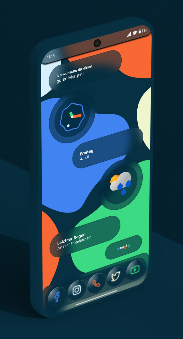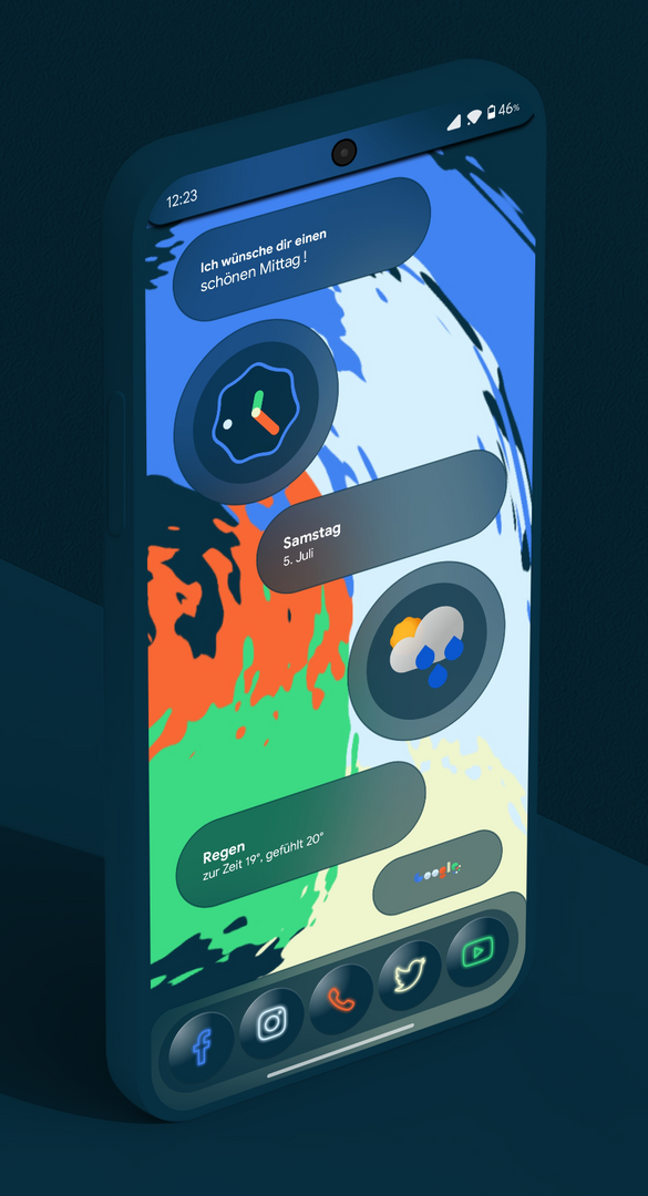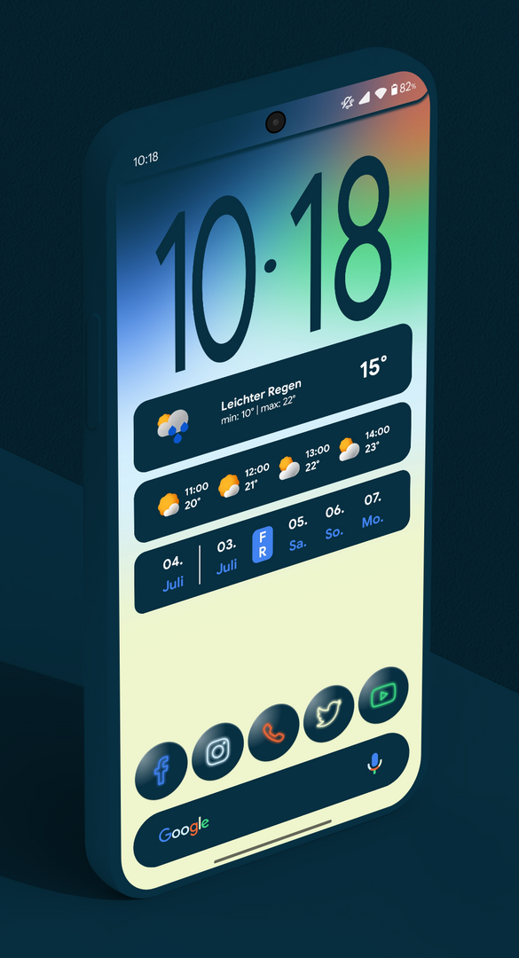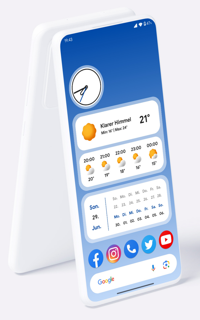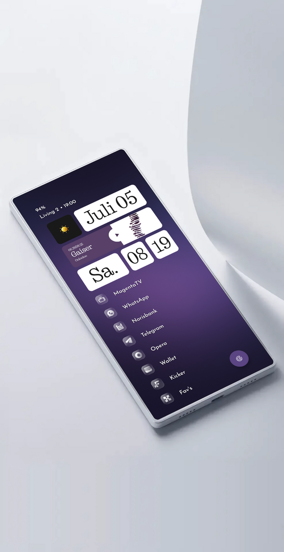 Größere Uhr, wie auf dem iOS-Sperrbildschirm (eine Idee von Mamibe selbst). Einige Lücken wurden korrigiert. Und eine stündliche Vorhersage hinzugefügt.
