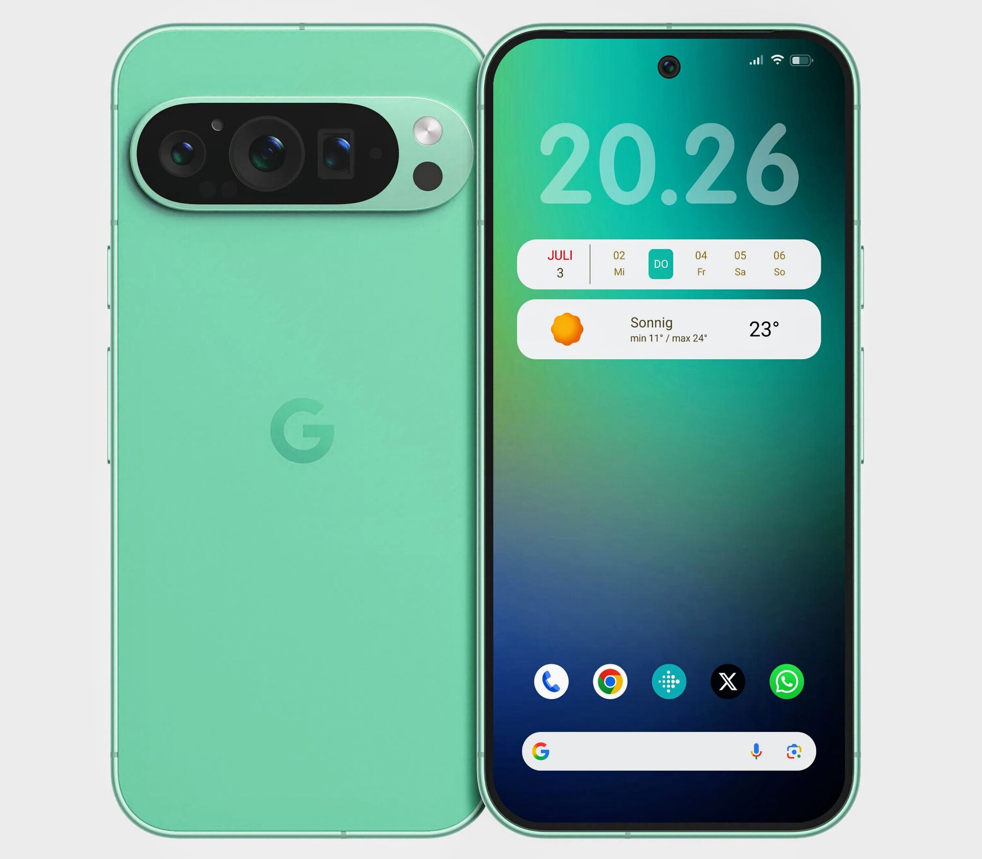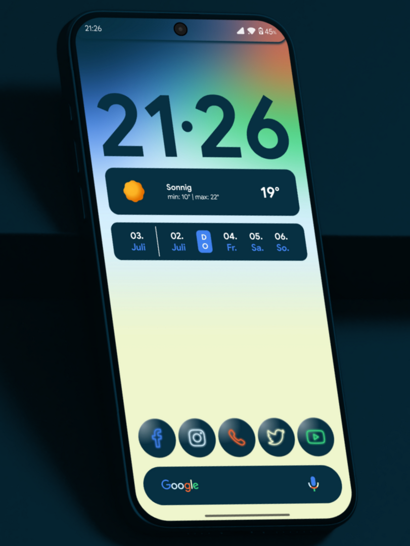 Das Google-Logo unten neu ausgerichtet und den Hintergrund für das Datum hinzugefügt.