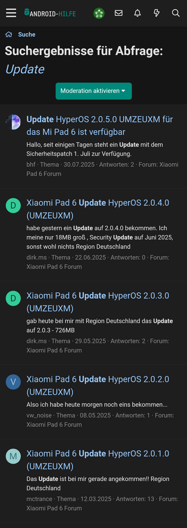 Leider stelle ich immer wieder fest, dass selbst kleine Änderungswünsche und -vorschläge hier gegen die Wand laufen. "Das haben wir immer schon so gemacht" oder "Das haben wir noch nie gemacht" gehören doch nicht in ein modernes Smartphoneforum, sondern eher in die Bauernstube. Beispiel Threadleichen, da werden m.M. nach unnütze Einzelthreads fûr jedes Softwareupdate eines Gerätes erstellt, die dann ein bis zwei Antworten mit Glück erhalten, viele Threads haben null Antworten oder eine und füllen unnütz das Forum, anstatt Softwareupdates fûr eine Modellvariante zusammenzufassen, Bsp. X Fold 5 Chinarom und X Fold 5 Global Rom (wobei da erst noch Nutzer dieser Geräte ins Forum finden müssen). Wenn man anstelle des einzelnen genau bezeichneten Updates diese alle in einem Thread unterbringen würde, könnte man besser nachvollziehen, was sich alles bereits getan hat, welche Features hinzukamen und Bugs behoben wurden und wie häufig Updates für ein Modell erschienen und erscheinen. Mit dem nächsten Update schließt sich doch automatisch innerhalb des Threads das alte Thema, weil zukünftige Nutzer mit dem letzten Update versorgt werden und die vorherigen nicht mehr bekommen. So baut etwas aufeinander auf.