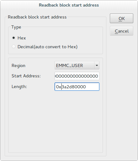 a) Wenn Du ein komplettes Image erstellen möchtest, definiere den Namen und Speicherort und klicke "Save" an. Im zweiten Dialogfenster gibst Du die Startadresse von "pgpt" aus der "partinfo"-Datei an, die Länge kannst Du mit einem Hex-Rechner ermitteln: Dazu addierst Du die Startadresse von "Userdata" plus deren Länge ("Size").