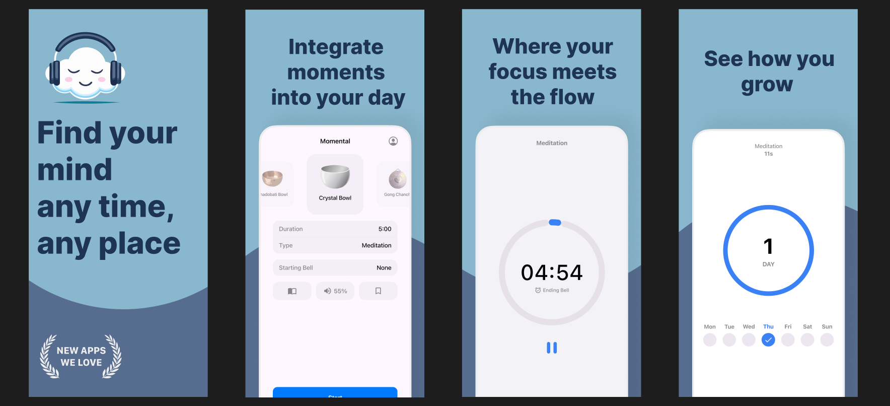 Ob ihr meditieren, konzentriert arbeiten oder eine Gewohnheit ändern wollt – Momental schafft den Raum dafür. Mit oder ohne Musik, ganz wie es für euch passt.