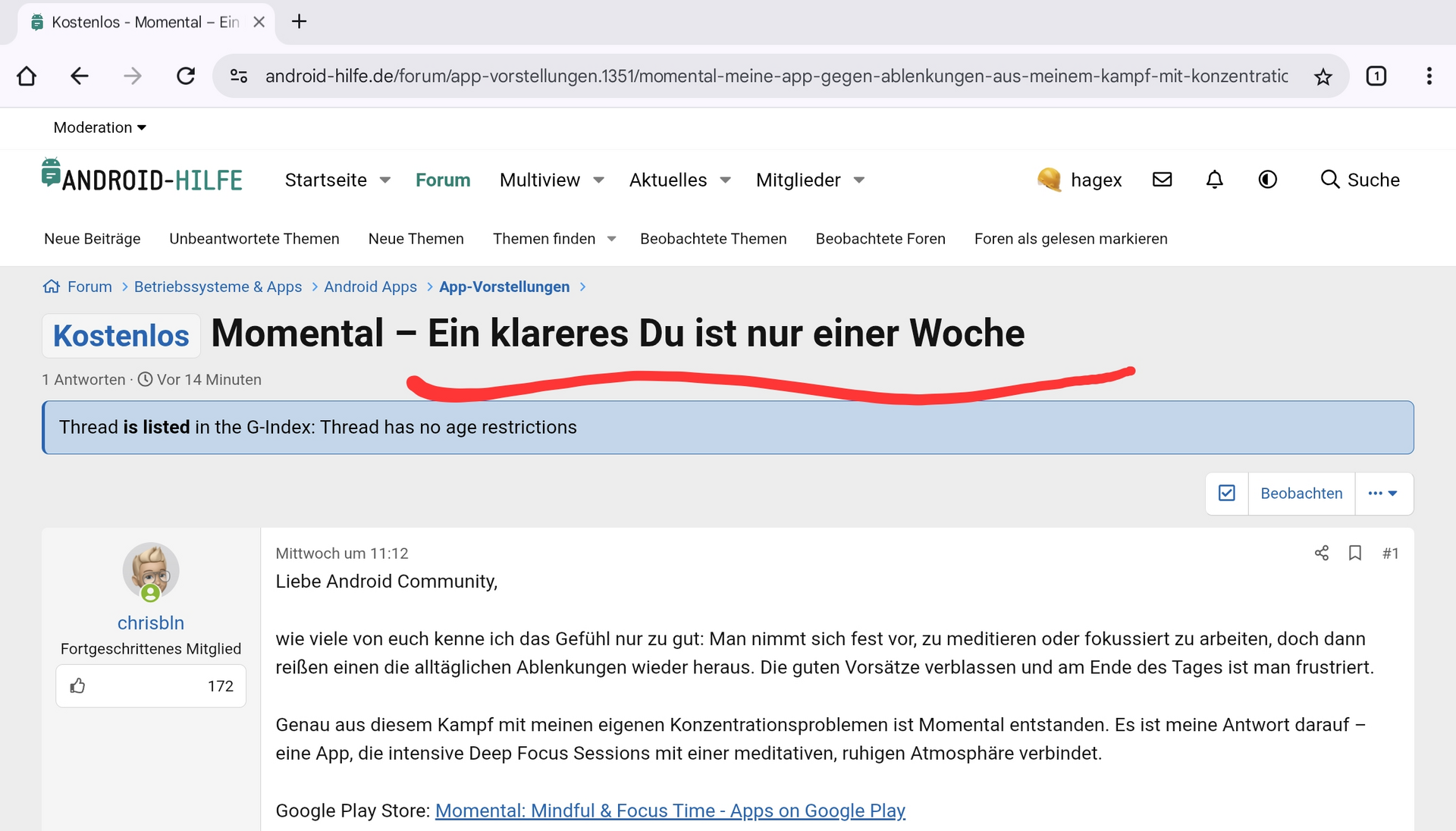 Ich würde mich riesig freuen, wenn ihr Momental eine Chance gebt und mir euer ehrliches Feedback da lasst. Da die App aus einem persönlichen Bedürfnis heraus entstanden ist, ist mir die Weiterentwicklung mit der Community besonders wichtig.