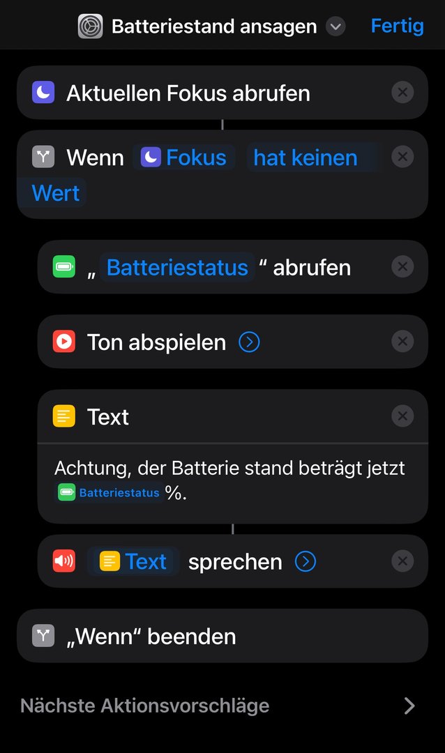 Wie genau erstellt man den Befehl zum Vorlesen des Batterie Status? Ich bin wirklich komplett planlos bei den Kurzbefehlen.