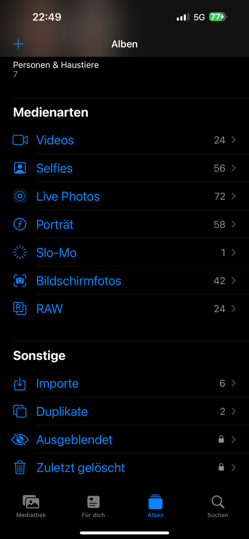 Wo genau kann ich denn Photos/Musik von einem Backup ausschließen?