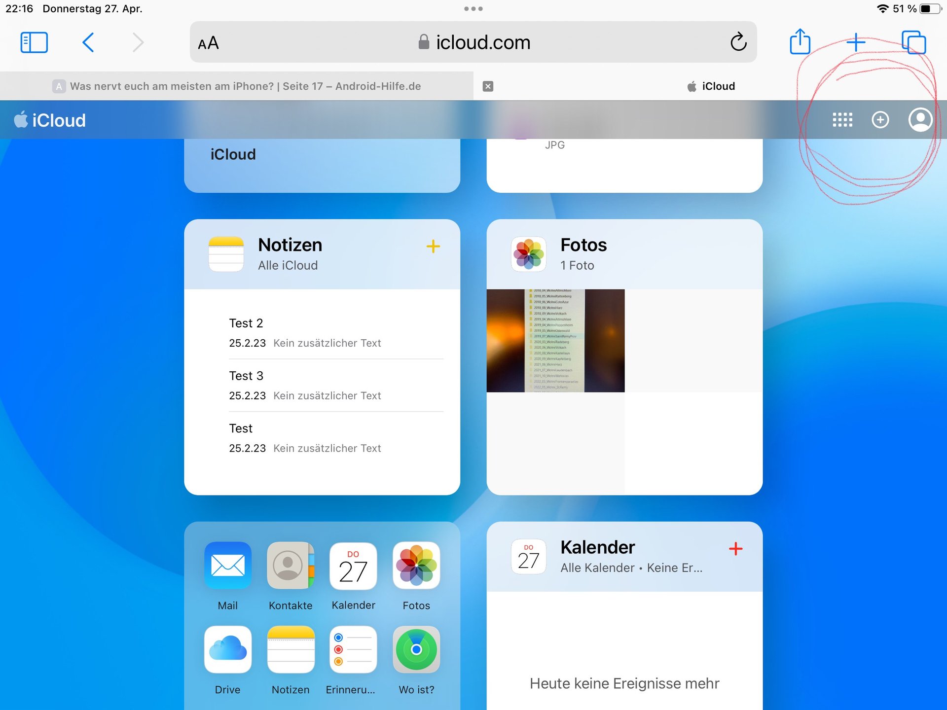 das verstehen ich so nicht.Rigoberto2 schrieb:Nächste Geschichte, ich will vom iPad und/oder iPhone in die Cloud und kann da aber nur auf Drive zugreifen. Will ich in die Apps, also Foto, Kontakte… geht das nur über den Rechner oder über Browser weil die eben nur da angezeigt werden.Warum weiß der Geier oder Apple