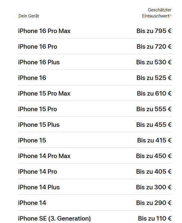 Wie hoch würdet ihr den Wiederverkaufswert eines optisch neuwertigen (keine sichtbaren Kratzer/Gebrauchsspuren o.Ä.) iPhone 16 PM mit 512GB internen Speicher, schwarz, 100% Akku, 243 Ladezyklen inkl. 1 Jahr Restlaufzeit AppleCare+ einschätzen?
