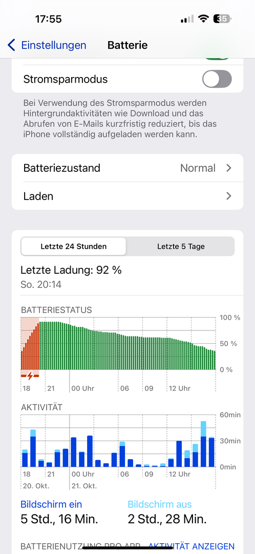 Jeder nutzt sein Handy anders, nur weil ich (und der Akku muss sich auch erst noch einpendeln) 5:22h und 80% habe heißt das nicht das es schlecht ist, weißt du was ich damit genau gemacht habe? Nein ich glaube nicht. Daher mein Rat dich, schaue nicht nach solchen unrealistischen Tests wie Chip. Es gibt YouTuber die nutzen das Geräte von morgens bis abends und zeigen dann die DoT das ist wesentlich mehr aussagekräftiger.