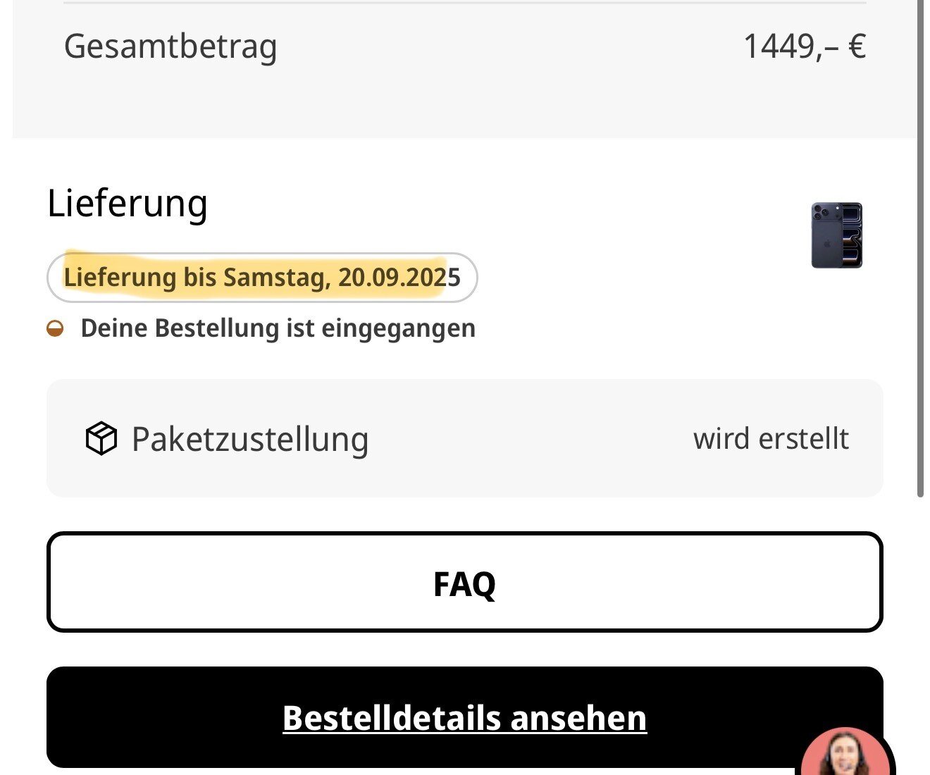Ist bei mir auch so. Ich dachte schon, dass etwas schief gegangen ist. Aber dann warte ich in Ruhe ab und gucke heute nicht mehr nach dem StatusDerneueiphone17 schrieb:Hallo zusammen,