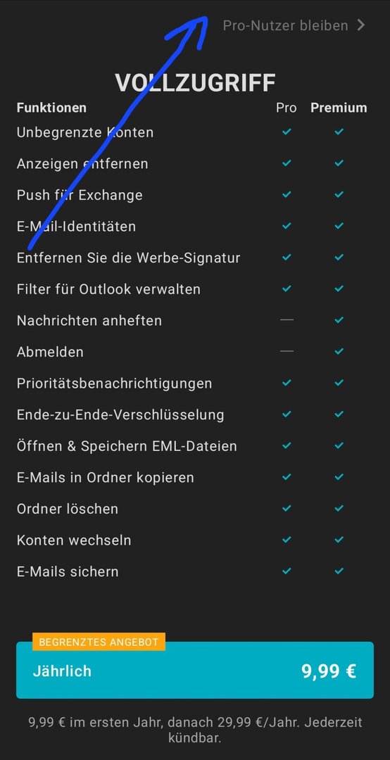 Leider kann man jetzt kein Pro-Nutzer mehr werden...W113 schrieb:Mit bereits gekauften AquaMail Pro Key kannst du Pro-Nutzer bleiben