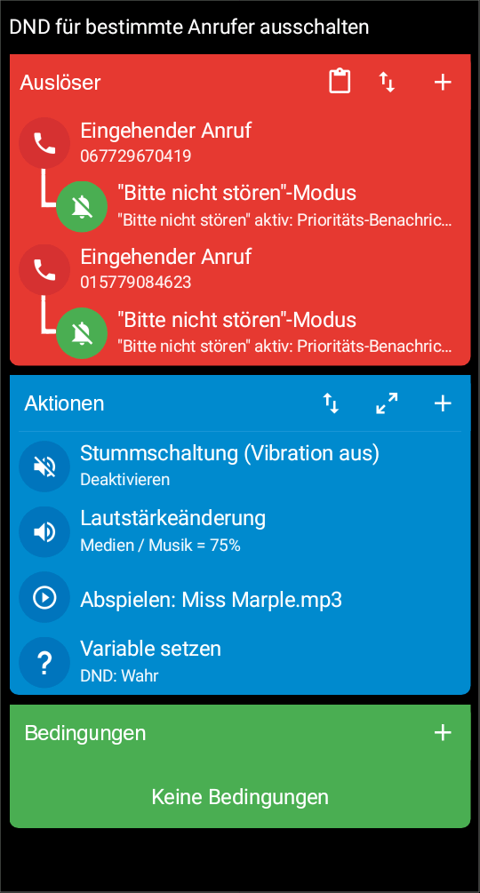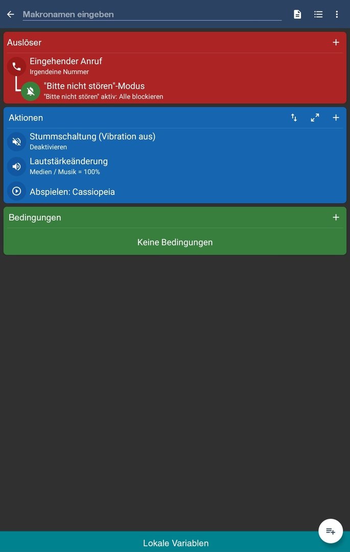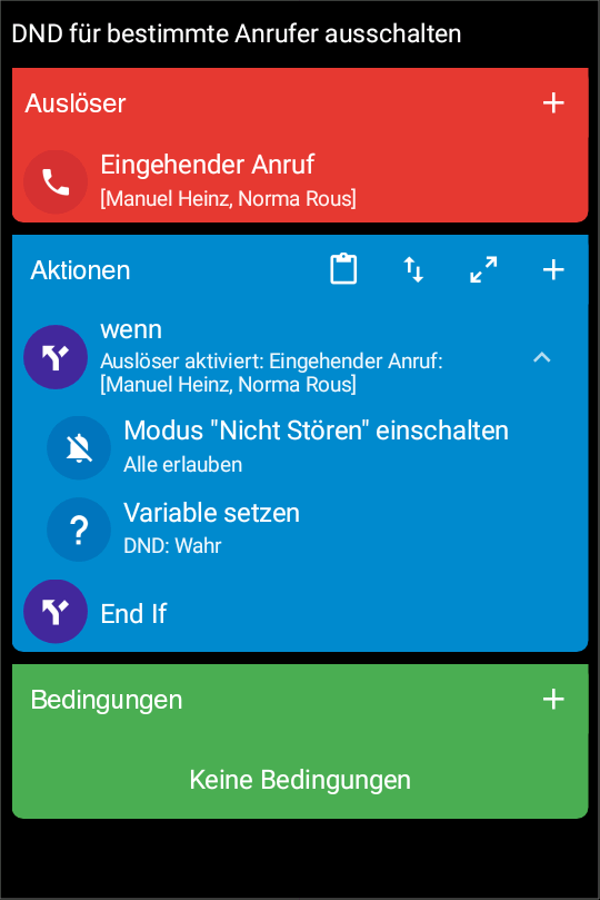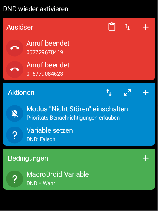 mit nachfolgendem Macro schaffe ich es, den DND-Modus (DND = do not disturb, bitte nicht stören) bei bestimmten eingehenden Anrufen zu deaktivieren. Leider klingelt das Telefon dann trotzdem nicht bei dem Anruf, der das Macro aktiviert hat.