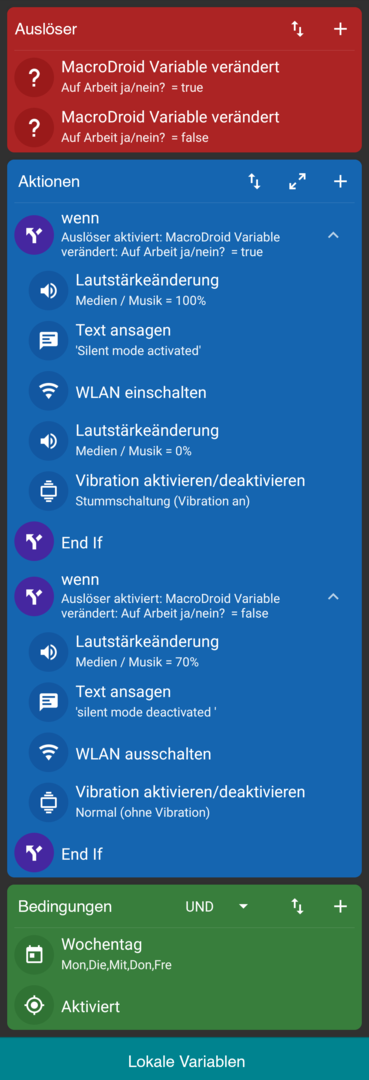 Hallo, ich habe mir heute Macrodroid installiert. Wenns klappen würde scheid es ja echt cool zu sein, besonders da es ja auch eine Verbindung zu meiner WearOS Watch (Galaxy Watch 5) gibt.