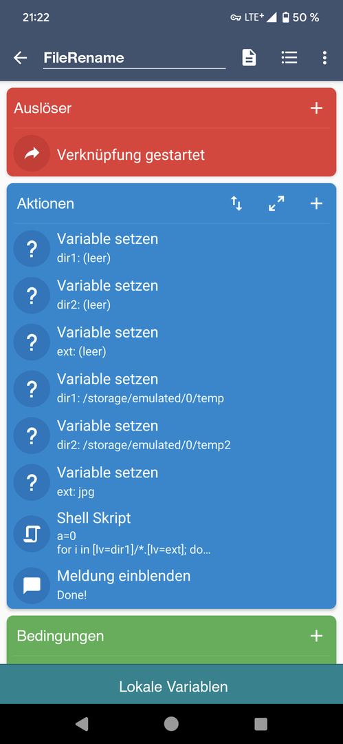 das Google Pixel speichert Kamerabilder ja bekanntlich immer mit dem Präfix PXL - das lässt sich, zumindest bei nicht gerooteten Geräten, leider nicht ändern. Ich habe daher ein Script gefunden und angepasst, das schon mal auf dem richtigen Weg ist. Zwar kann ich die Dateien nicht umbenennen, aber mit einem neuen Dateinamen in das Zielverzeichnis kopieren.
