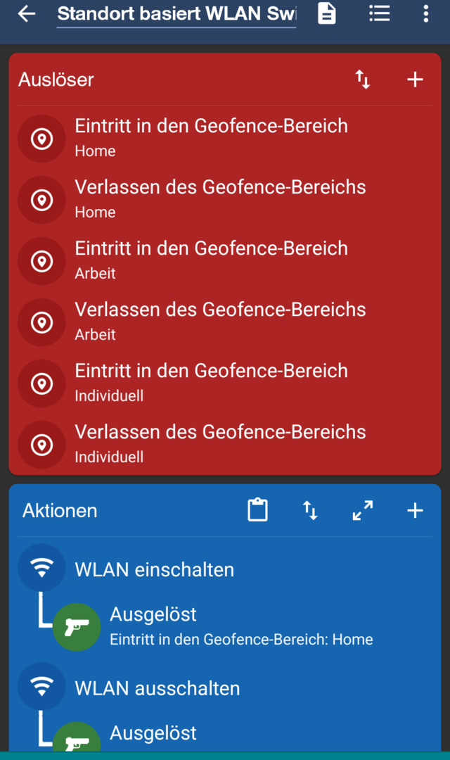 Revan335 schrieb:Hallo, scheinbar funktioniert das schalten des WLANs nicht wenn man den Geofence Bereich betritt oder verlässt. Muss man da was beachten? Vielen Dank!