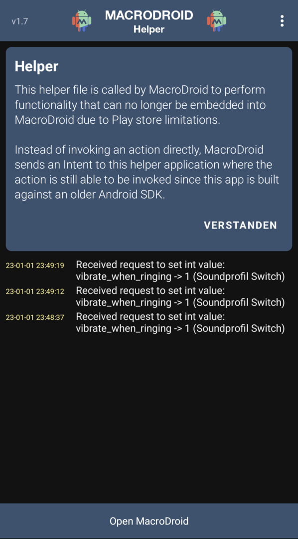 Muss ich in Macrodroid noch was dafür machen?