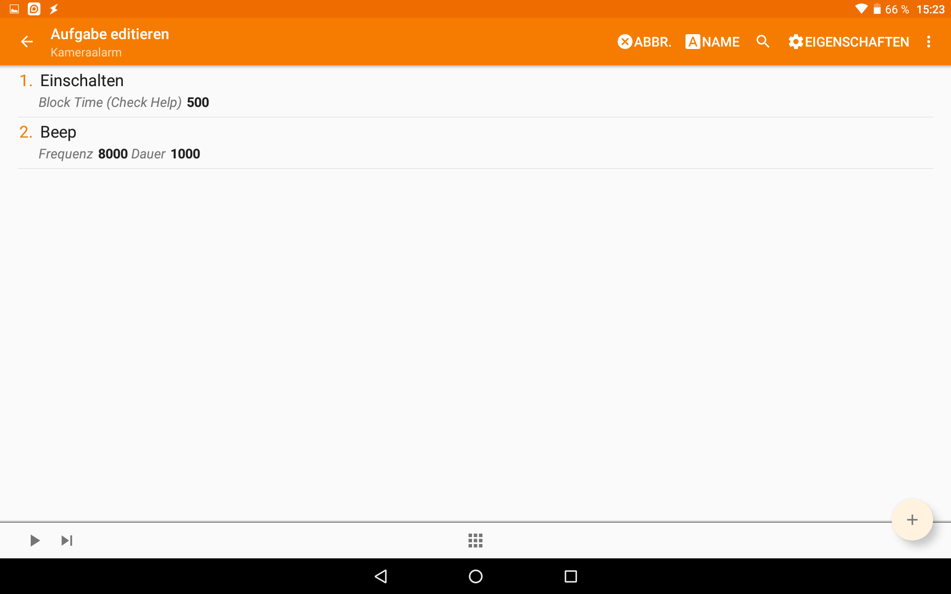 Dem habe ich dann Tasks zugewiesen, bspw. Display einschalten oder Alarmton.