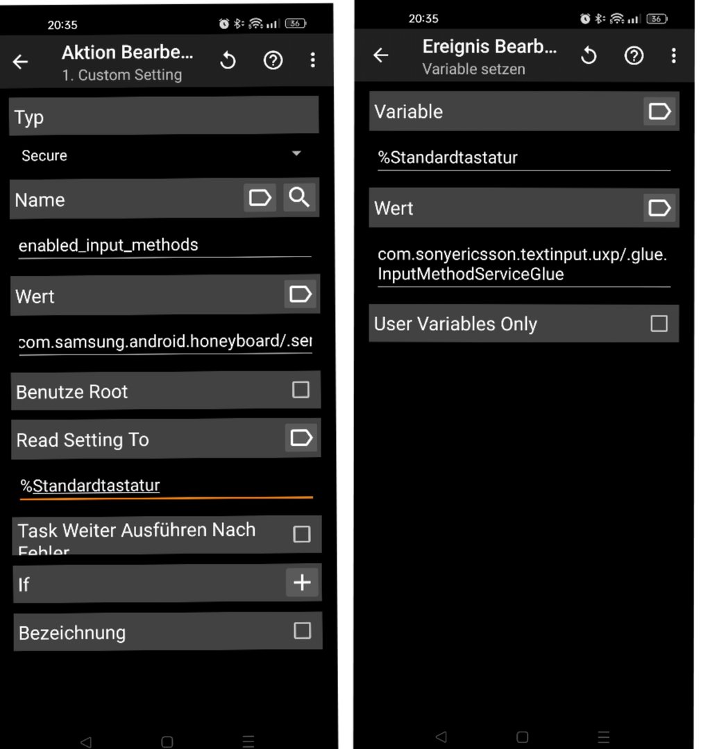 Ich habe hier einmal in der allgemeinen Tastatur Option meine SwiftKey Tastatur ausgewählt und alles mit einem custom setting in einen Task übernommen.