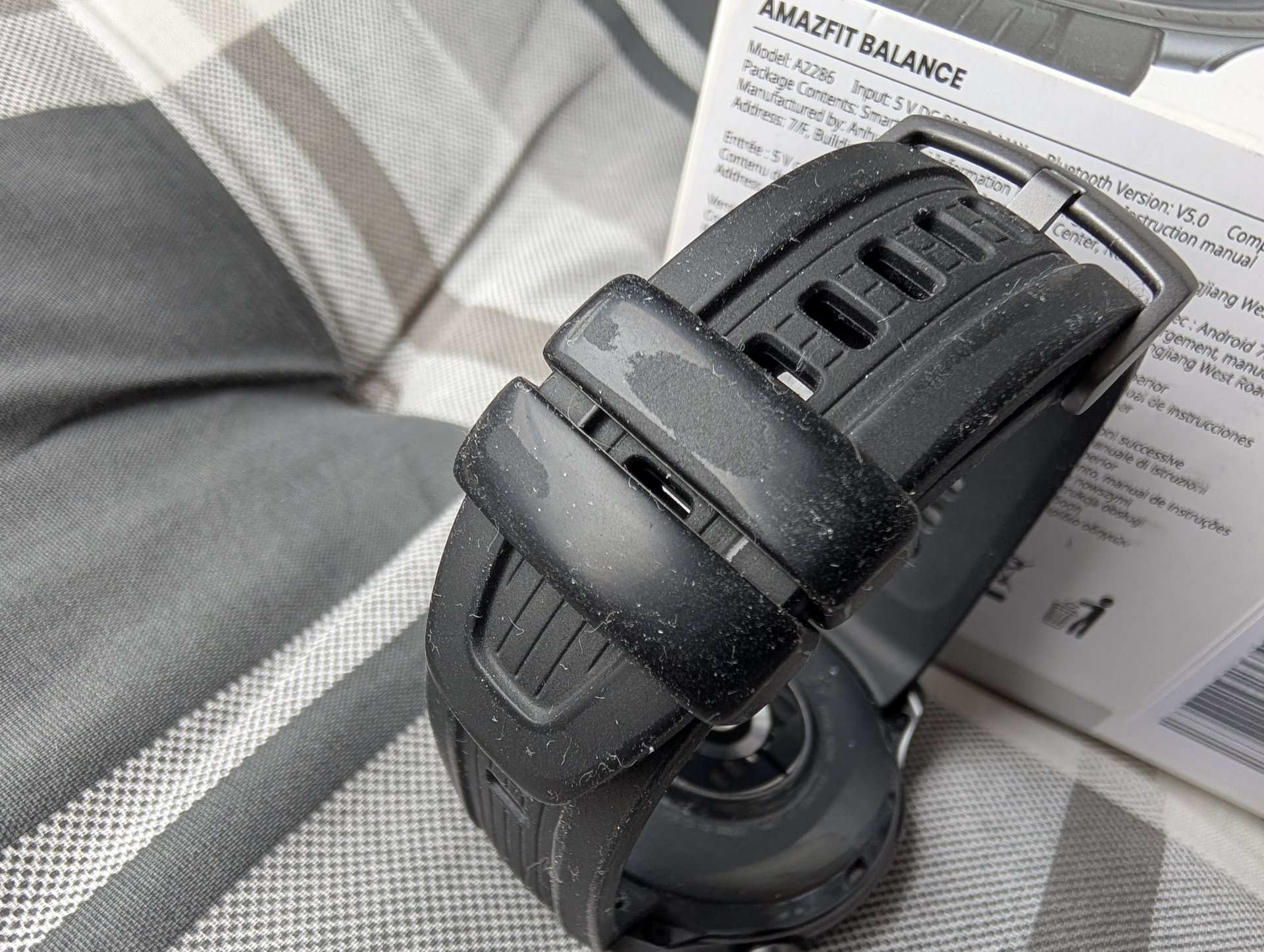 Auf dem Silikonband gibt es Abnutzungserscheinungen, die wahrscheinlich von den Handschuhen beim Radfahren herkommen.