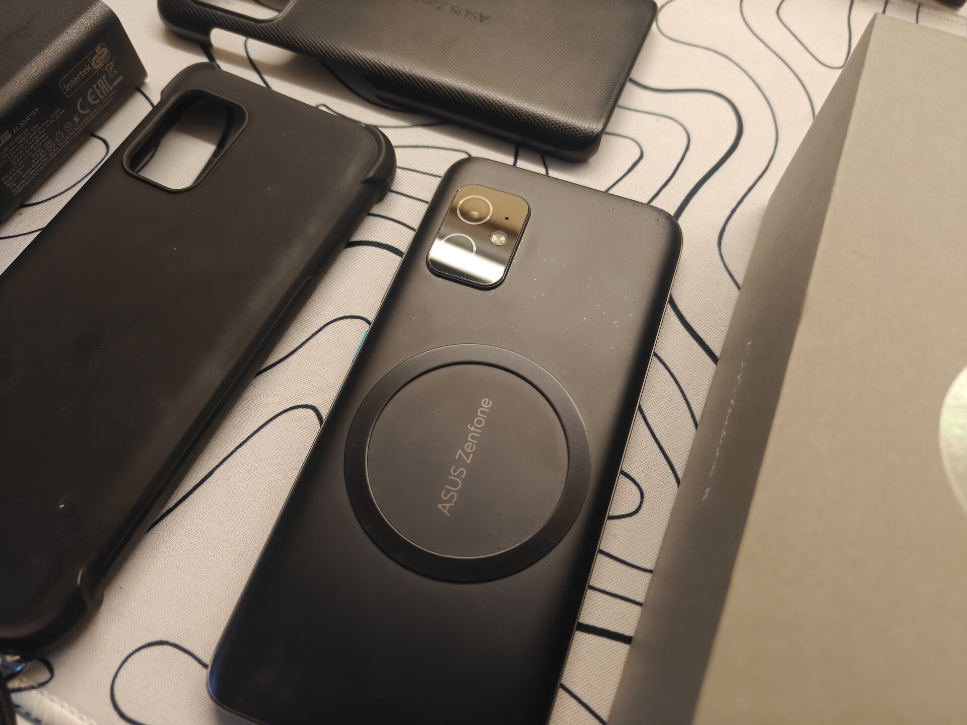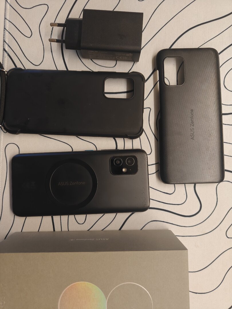 Ich habe noch ein Zenfone 8 bei mir gefunden, mit OVP, Ladegerät, Case und Kabel.