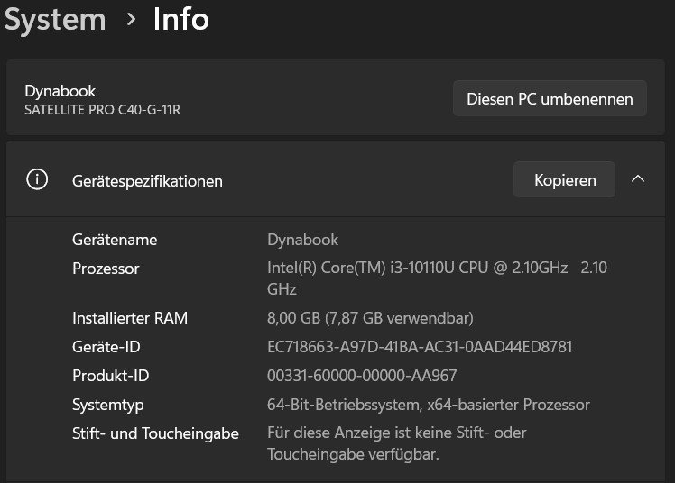 Ich verkaufe hier mein Dynabook Satellite Pro C40-G-11R 14" Notebook.