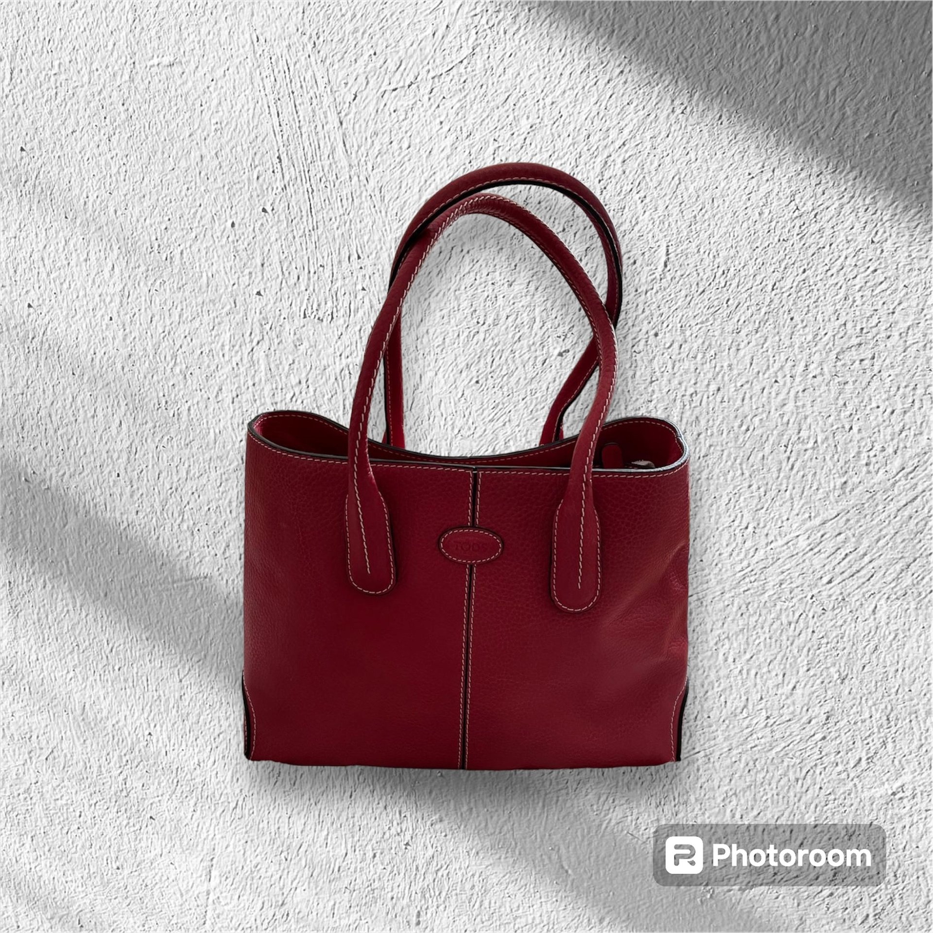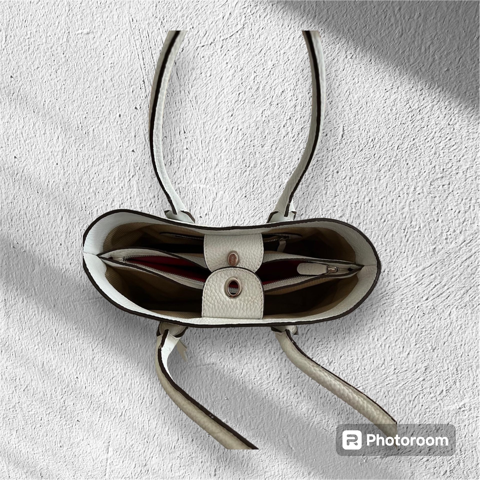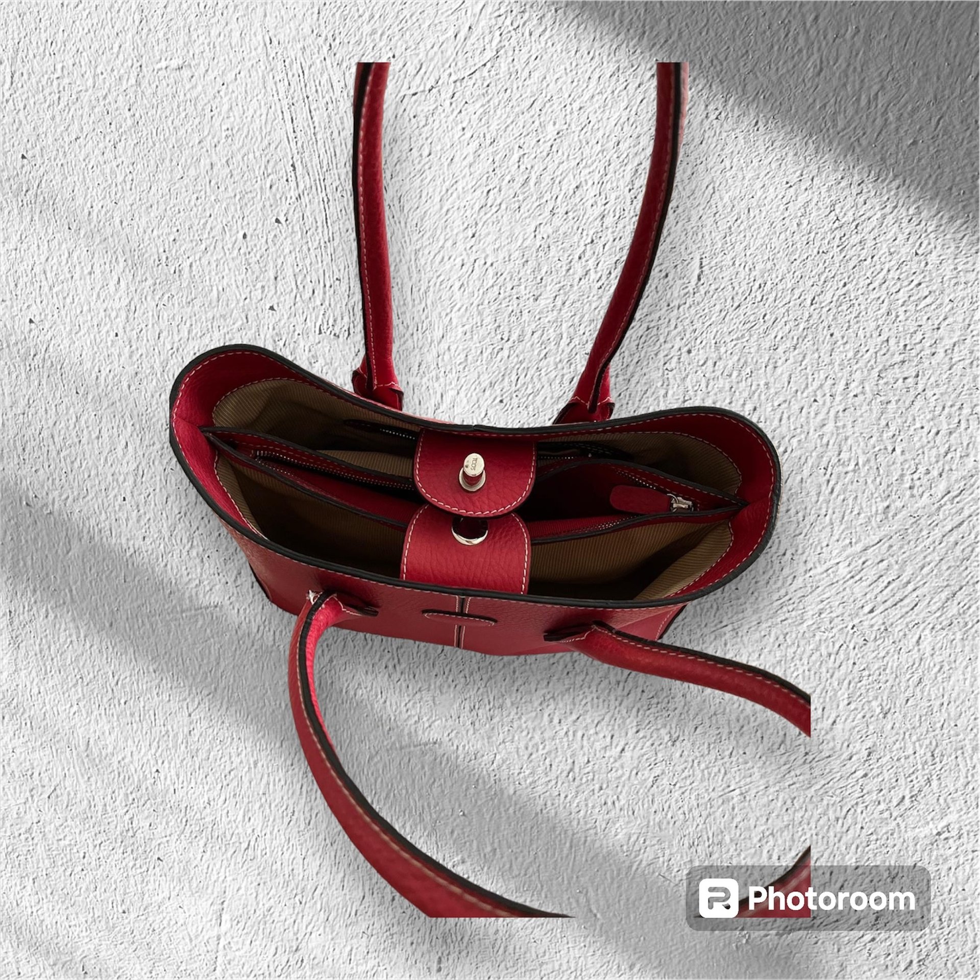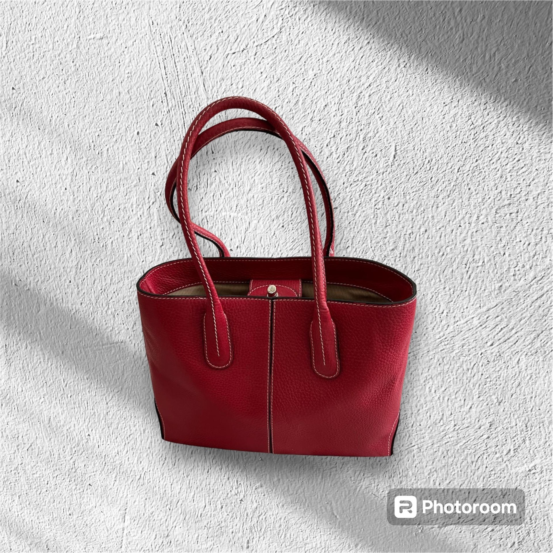 Rote und weiße Tasche haben die Maße H 28 B 37 T 11 cm ca.