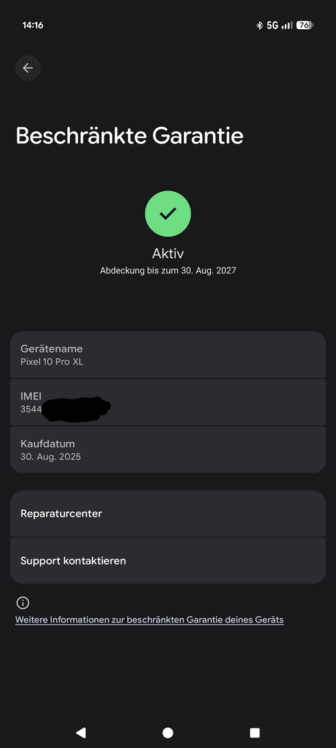 Ich habe das Telefon von einem Freund/Kollegen Gekauft und dieser hat es am 30. August 2025 im Google Store Gekauft.